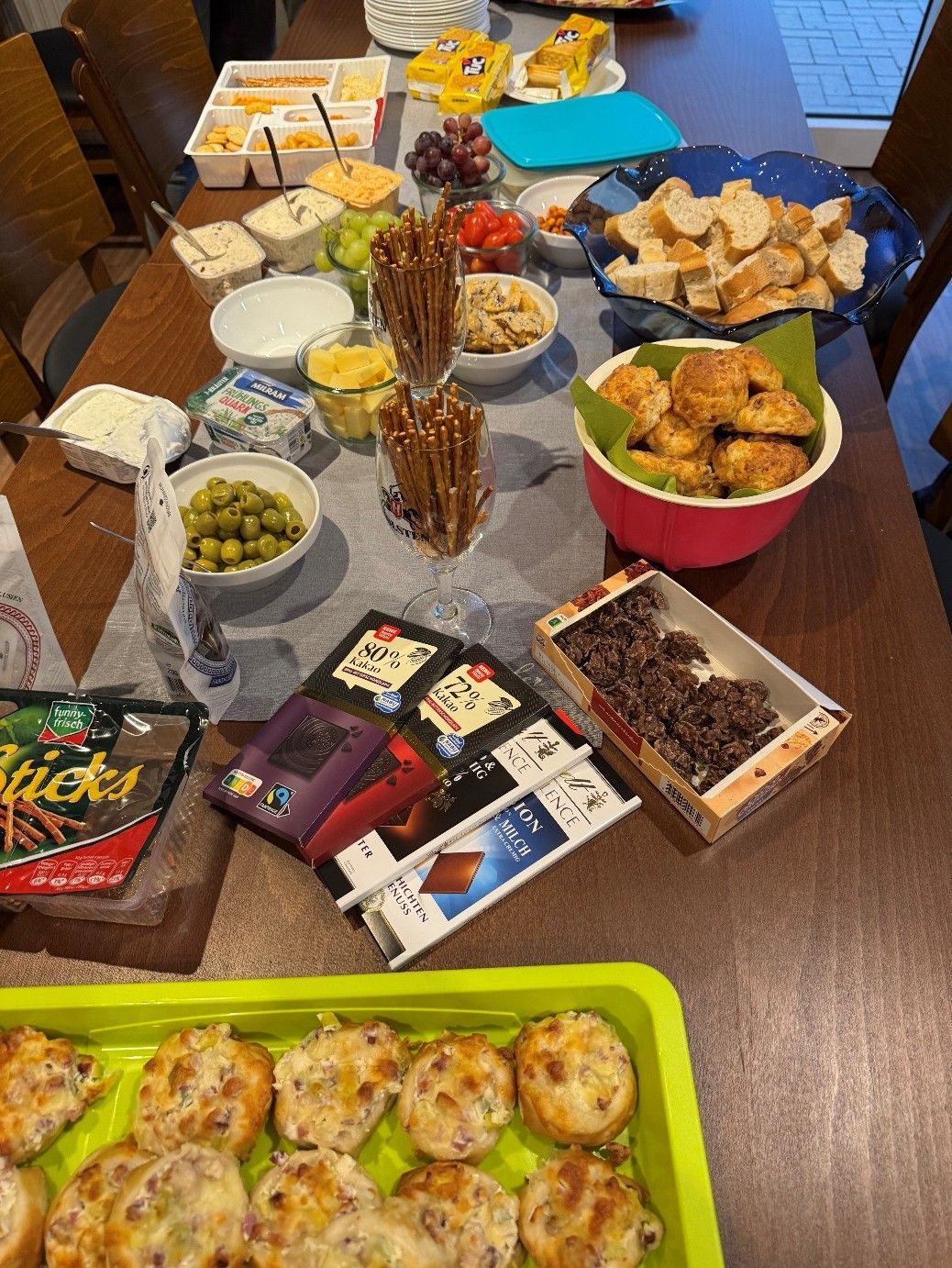 Während der Verkostung von sieben erlesenen Weinen konnten wir viel Neues lernen und miteinander ins Gespräch kommen. Für das leibliche Wohl sorgte ein abwechslungsreiches Buffet, das von den Teilnehmenden liebevoll zusammengestellt wurde.